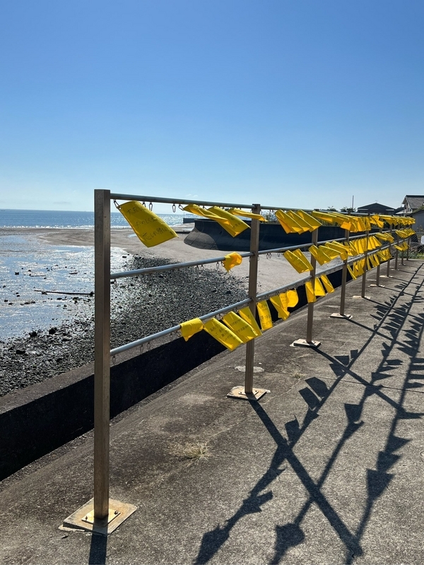 ホームには、電車と同じ、黄色のハンカチが吊る下がっています。