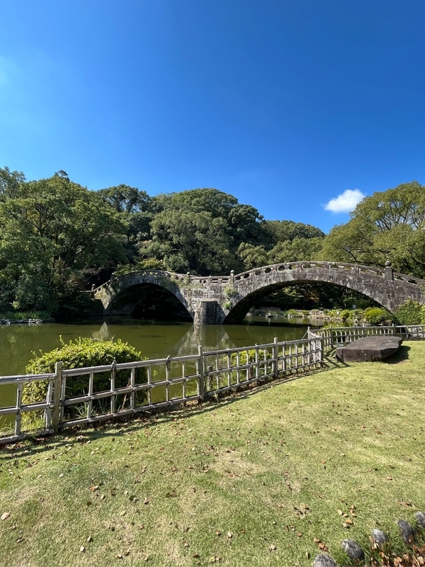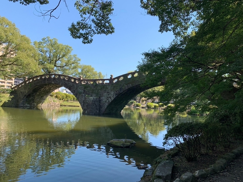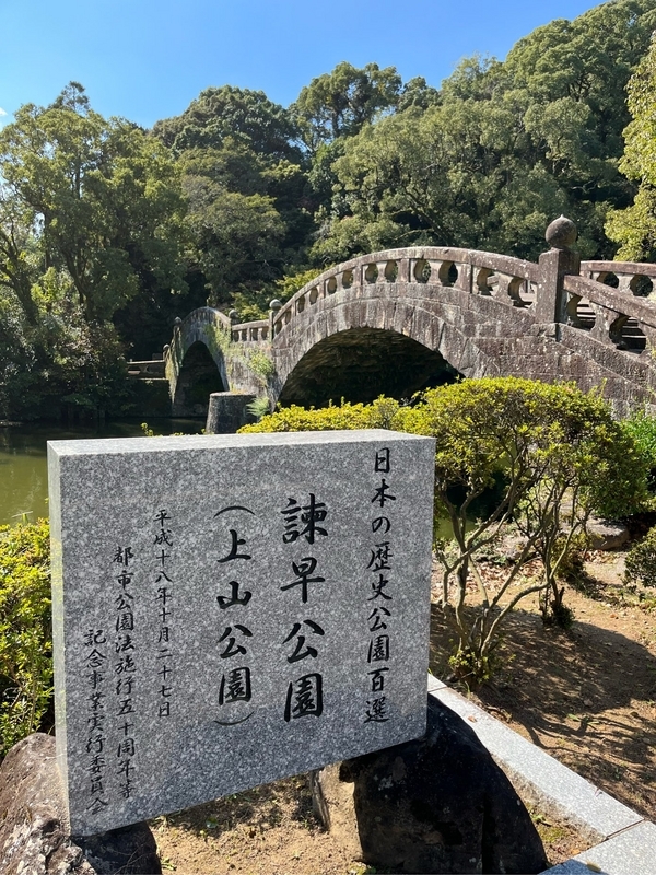 長崎の眼鏡橋といえば、長崎市内にかかる眼鏡橋を思い浮かべますが、長崎には幾つか眼鏡橋があり、この諫早公園にかかる眼鏡橋は、国の文化財として登録されているようです。