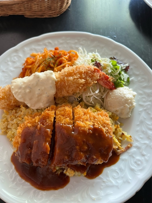 私達が注文したのは、「レディーストルコライス」で、普通より少し小盛になってます。 さらに、カツだけではなく、エビフライも乗ってます。